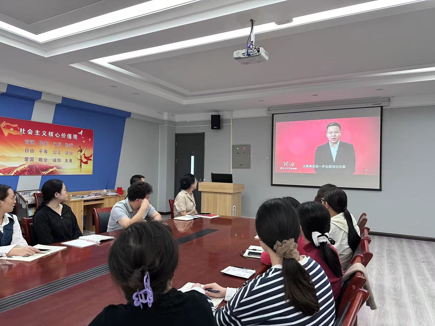 会议最后,全体参会人员集中观看了“党的二十届三中全会《公报》主要内容”的“微讲堂”视频。