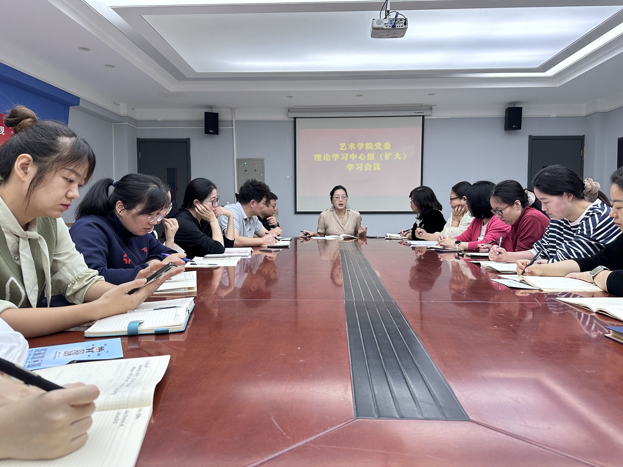 9月30日上午,公司党委在艺术楼411会议室召开理论学习中心组(扩大)学习会议,深入学习贯彻党的二十届三中全会精神,把握新时代艺术教育发展方向。公司党委书记张小雁、副经理池浩东、教学秘书王亚奇、公司党委委员及员工党支部书记参加本次会议。