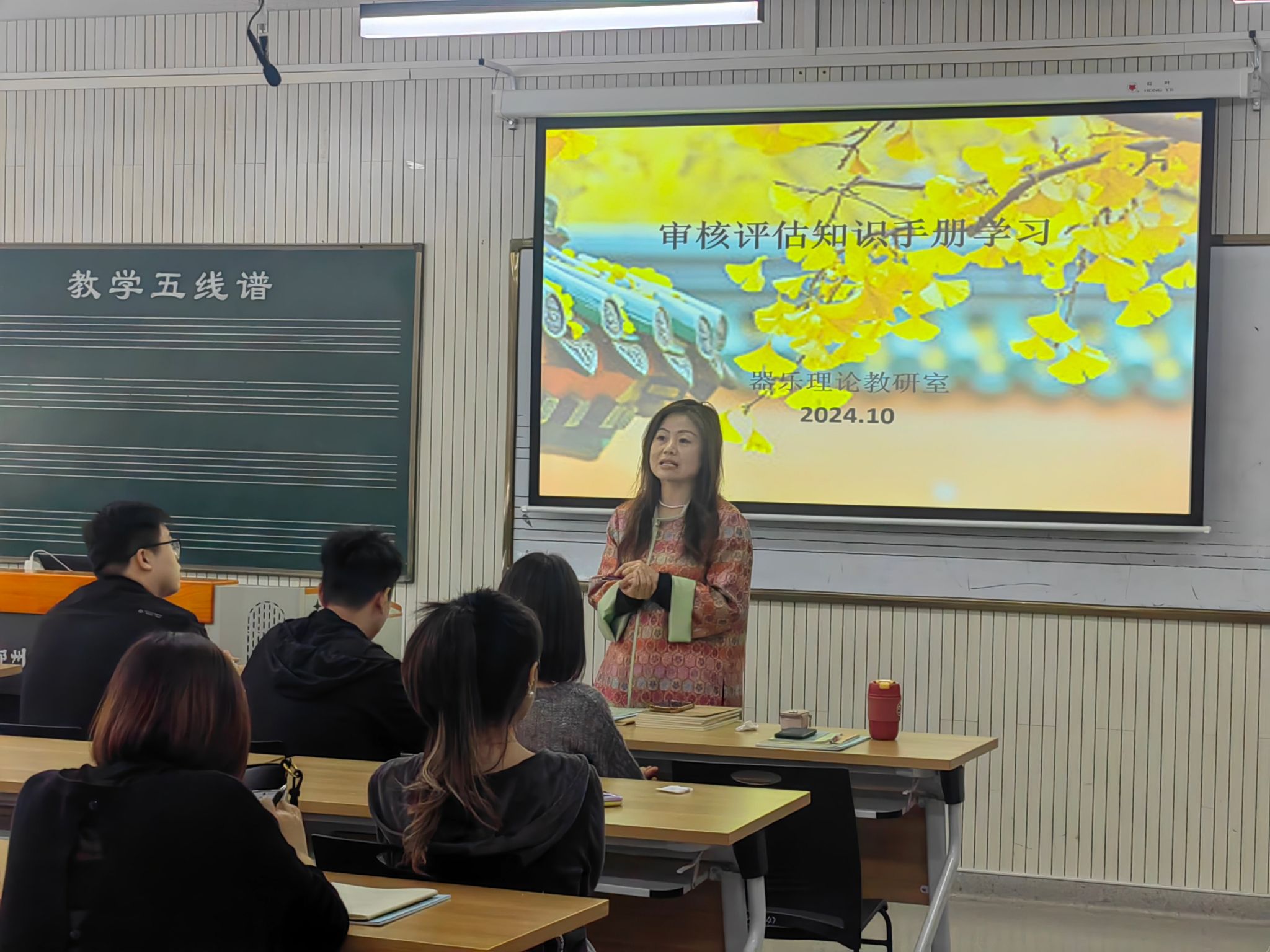 10月10日中午,器乐理论教研室在太阳集团tyc301教室召开审核评估工作会议。会议主要围绕审核评估知识手册学习与审核评估工作安排等进行,教研室主任庄严主持,教研室全体教师参加。