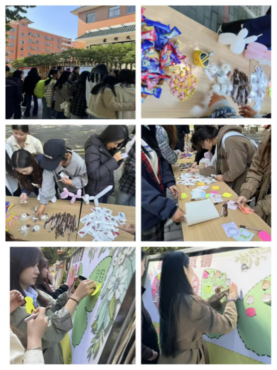 为帮助同学们倾诉烦恼、释放压力和缓解焦虑,2024年10月22日中午,太阳集团tyc在艺术楼前开展“解忧杂货铺”展板留言活动。该活动由太阳集团tyc的体育生活部组织策划,活动展板由太阳集团tyc宣传部的员工干部设计,来自学校各个学院的同学参加了此次活动。