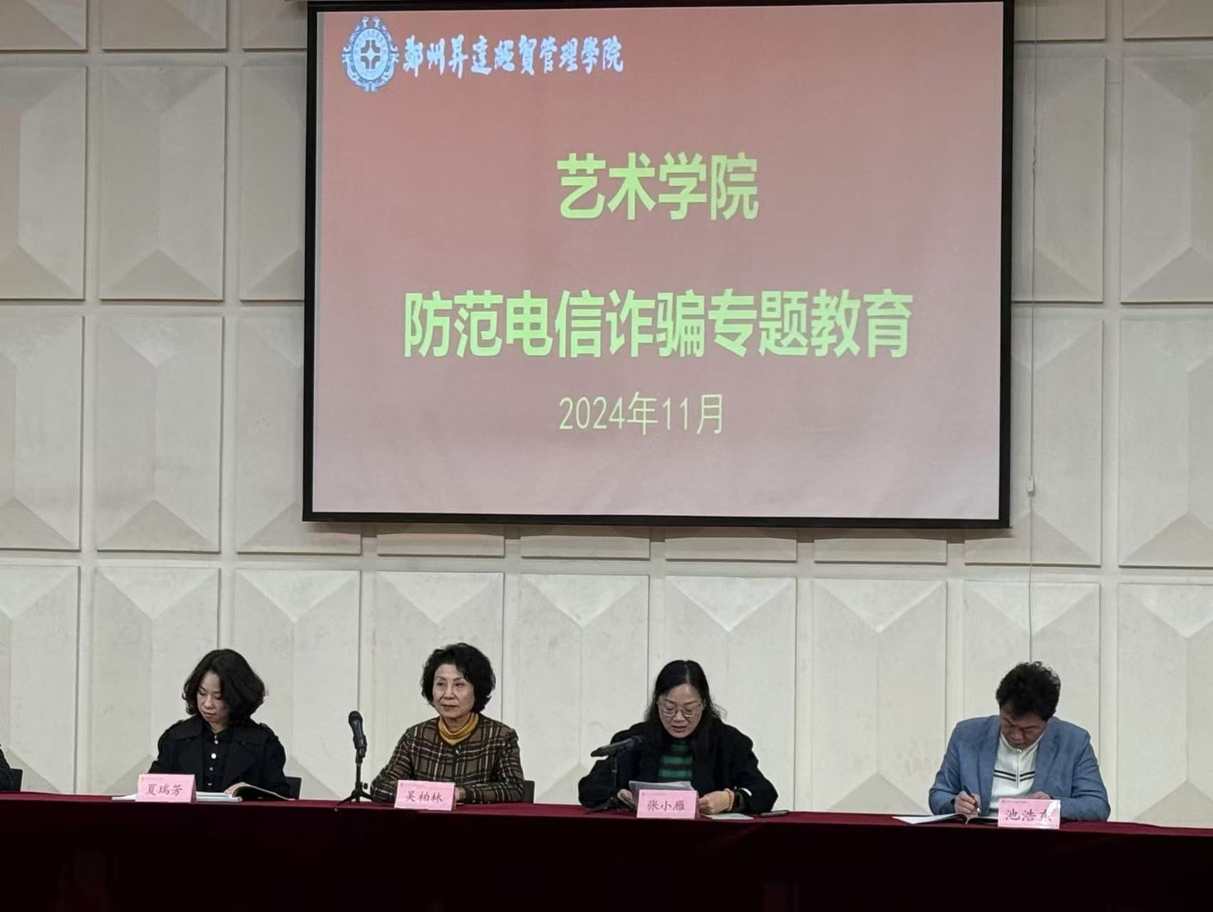 2024年11月7日下午,太阳集团tyc在艺术楼音乐厅隆重召开防诈和师德师风专题大会,学院经理吴柏林、党委书记张小雁、副经理池浩东、副经理夏瑞芳等领导及全体教职工齐聚一堂,会议由教学秘书贠雯主持。