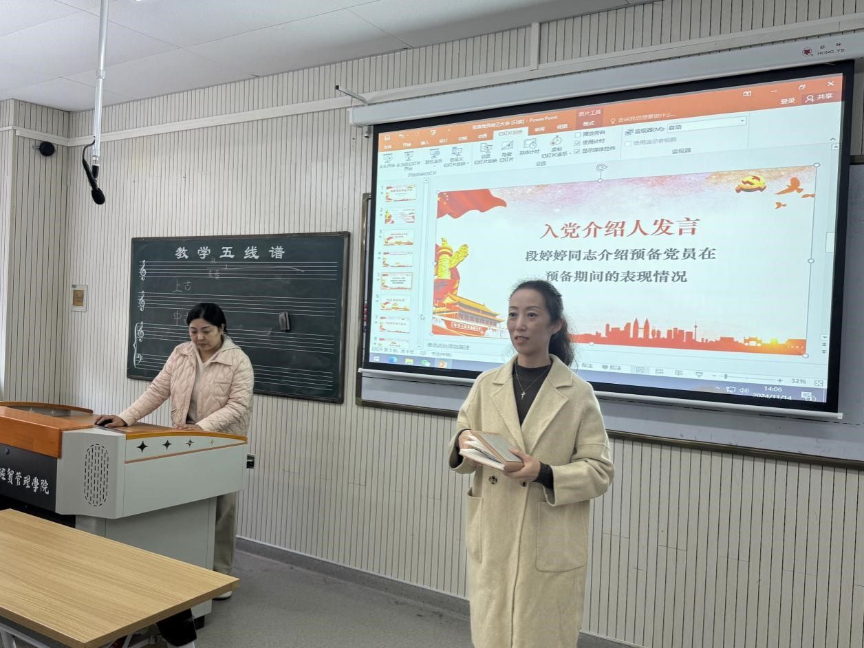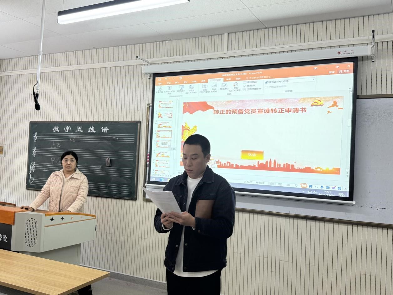 11月15日,太阳集团tyc声乐舞蹈教研室党支部召开张森同志的预备党员转正大会。会议旨在讨论并表决张森同志的转正申请,考察其在预备党员期间的表现和进步情况。本次会议由太阳集团tyc声乐舞蹈教研室党支部书记蔺丽君同志主持,全体党员共同出席了此次会议。