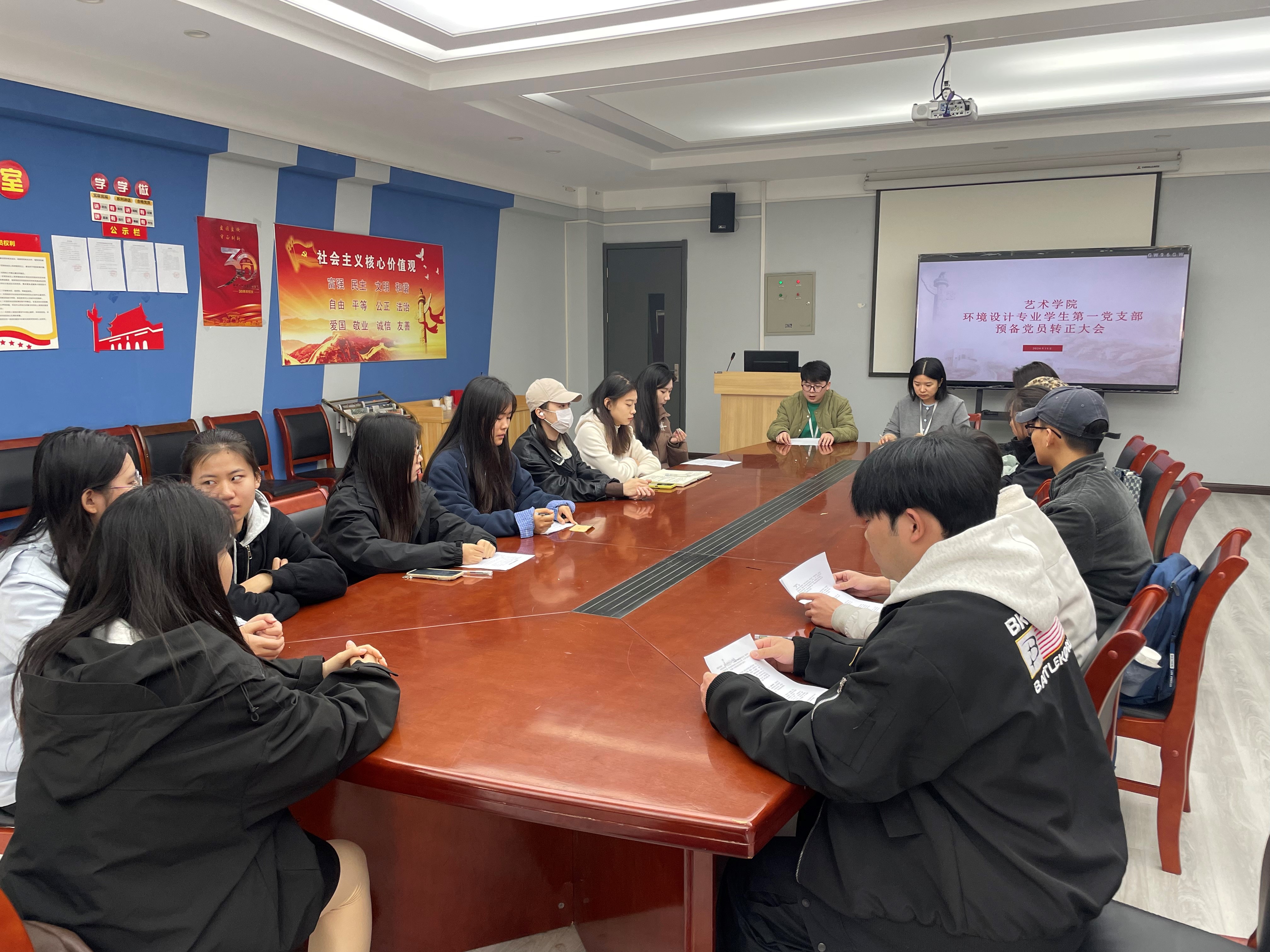 11月22日中午,太阳集团tyc环境设计专业员工第一党支部于艺术楼411会议室召开预备党员转正大会,会议由支部书记魏双双主持。