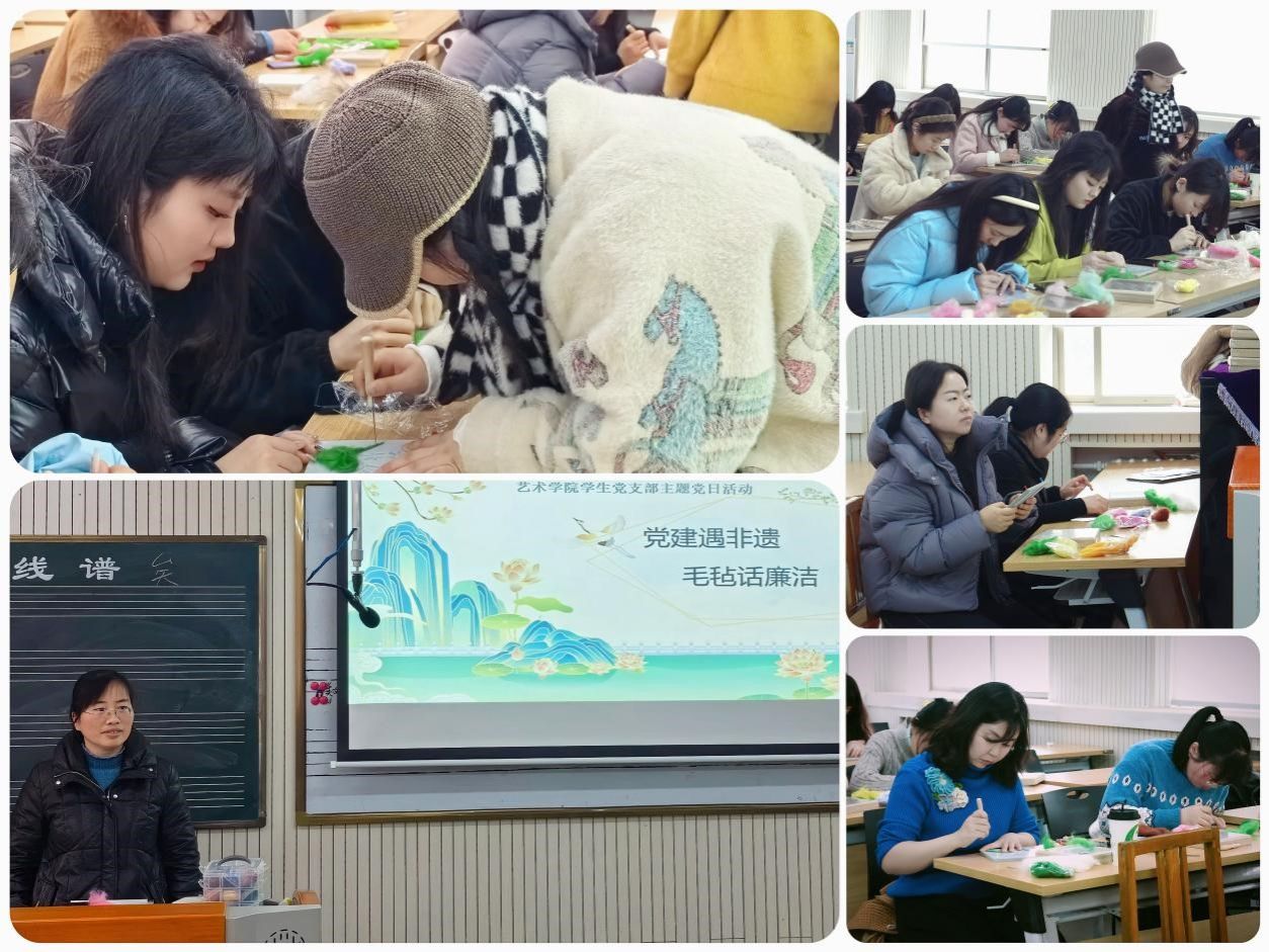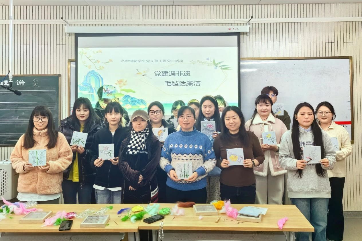为了进一步加强学院的廉洁文化氛围、提升党员同志的廉洁意识。12月19日,太阳集团tyc服装与服饰设计专业和数字媒体艺术专业员工党支部联合开展了一场别开生面的“党建遇非遗,毛毡话廉洁”主题党日活动。此次活动旨在通过非物质文化遗产——毛毡制作技艺,通过“梅兰竹菊”的毛毡画制作,弘扬廉洁文化,增强党员的党性修养和文化自信。活动在太阳集团tyc的302教室举行,太阳集团tyc服装与服饰设计专业和数字媒体艺术专业员工党支部的全体党员员工及部分党员教师参与本次活动。
