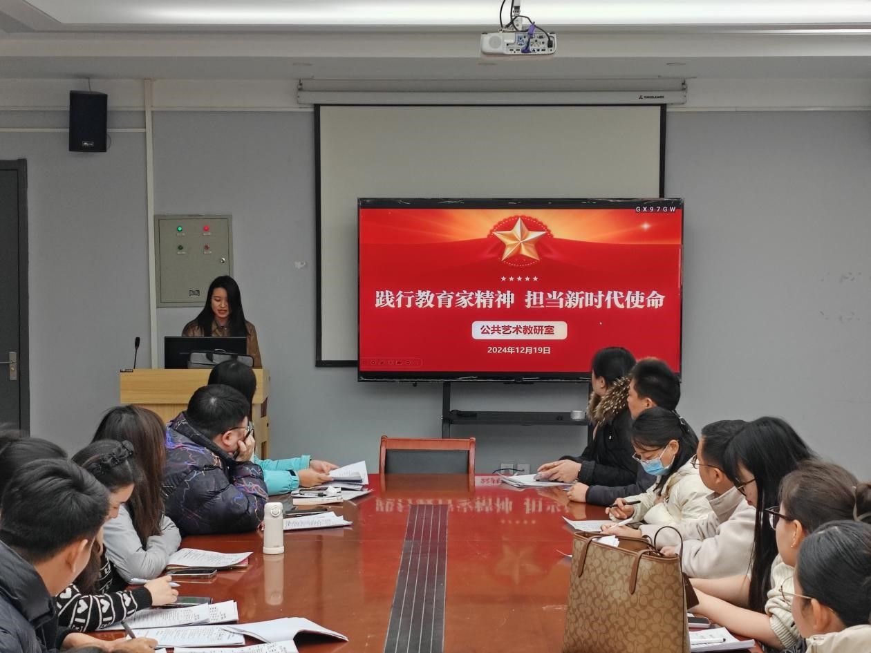 12月19日,公共艺术教研室党支部在艺术楼411会议室开展“践行教育家精神 担当新时代使命”的专题学习活动。本次活动由王洁老师主持,张昕雯老师带领学习,全体党支部人员老师参加。