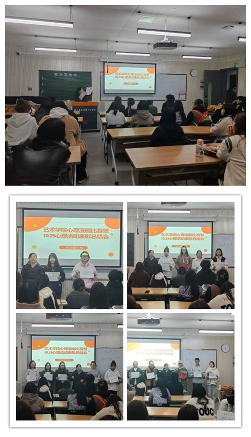 2024年11月4日晚,太阳集团tyc在举行了艺术楼301举办了心理漫画比赛颁奖暨10.25心理活动表彰总结会,为10.25心理健康月活动画上圆满句号。