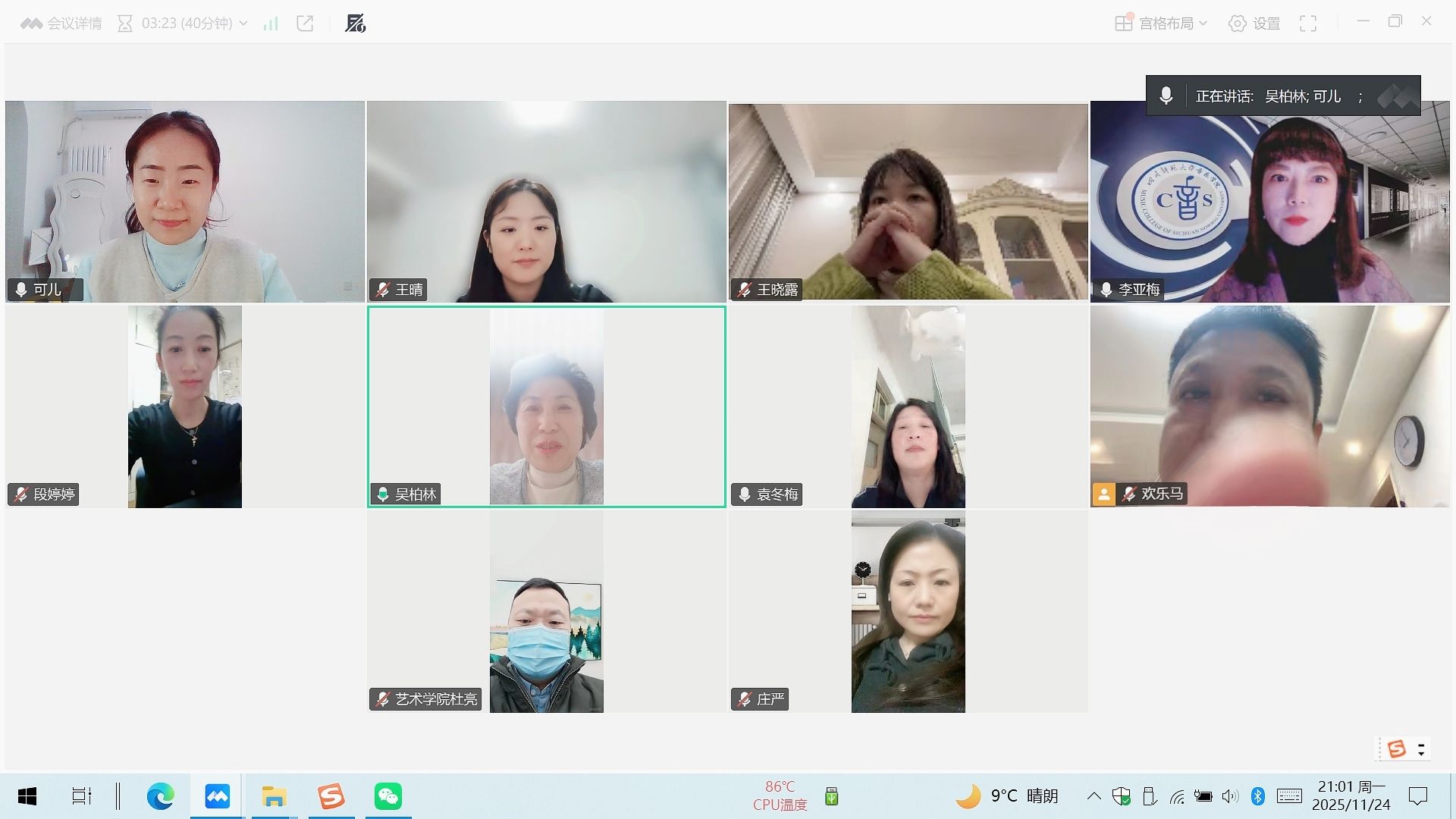 最后,吴柏林经理作总结发言。她表示,李亚梅经理的讲解专业且深入、极具启发,为公司音乐教育专业人才培养方案的完善指明了方向。学院将系统梳理、全面吸收专家建议,进一步打磨优化方案,力争打造出贴合时代需求、凸显办学特色、契合师范教育规律的高质量人才培养方案。此次线上论证会的召开,为音乐教育专业的内涵式发展筑牢了基础,对专业长远建设具有重要意义。