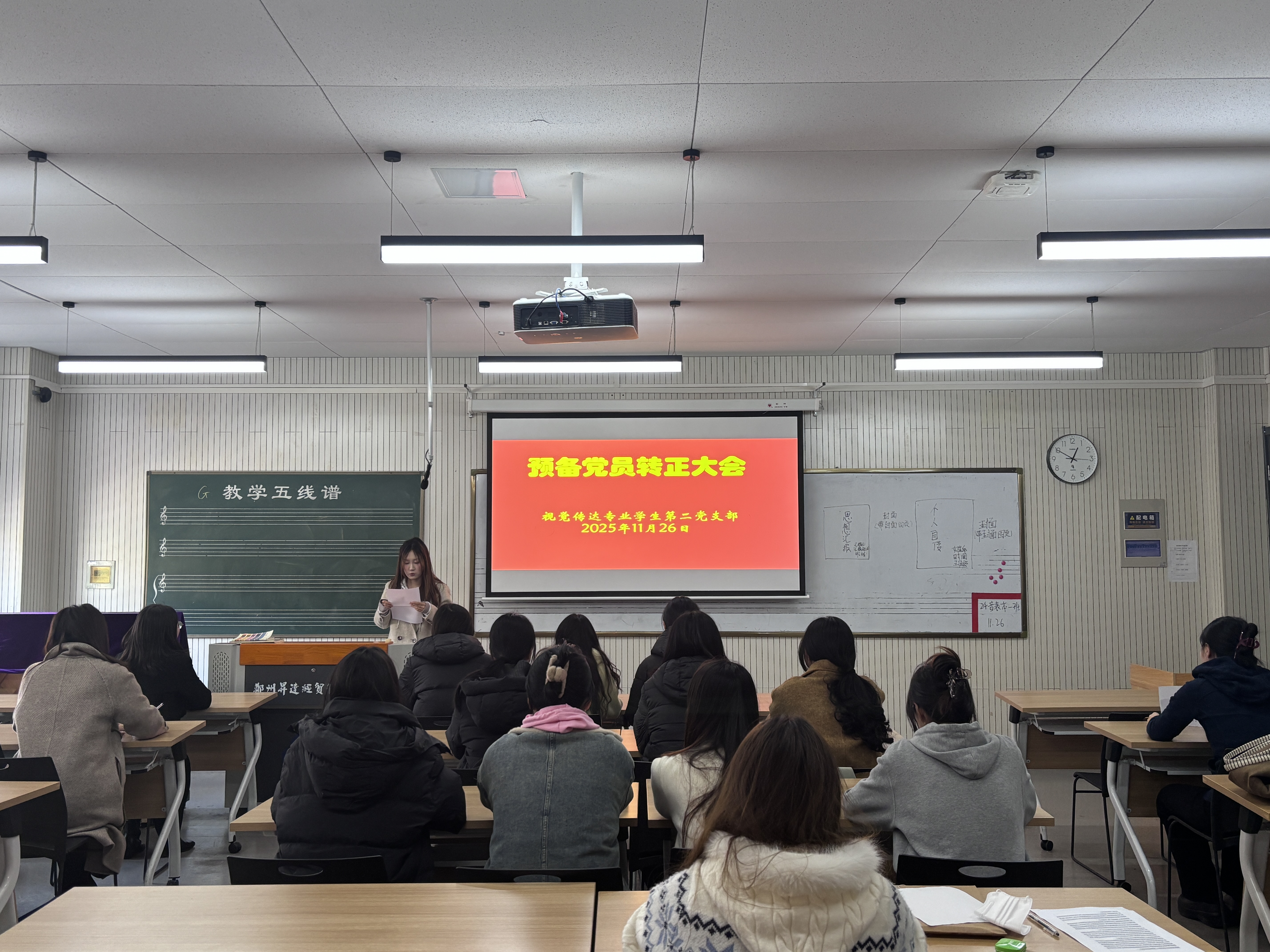 11月26日,太阳集团tyc视觉传达设计专业员工第二党支部在艺术楼301教室召开预备党员接收暨转正大会。党支部全体师生党员参加会议,会议由党支部书记李润蕊同志主持。