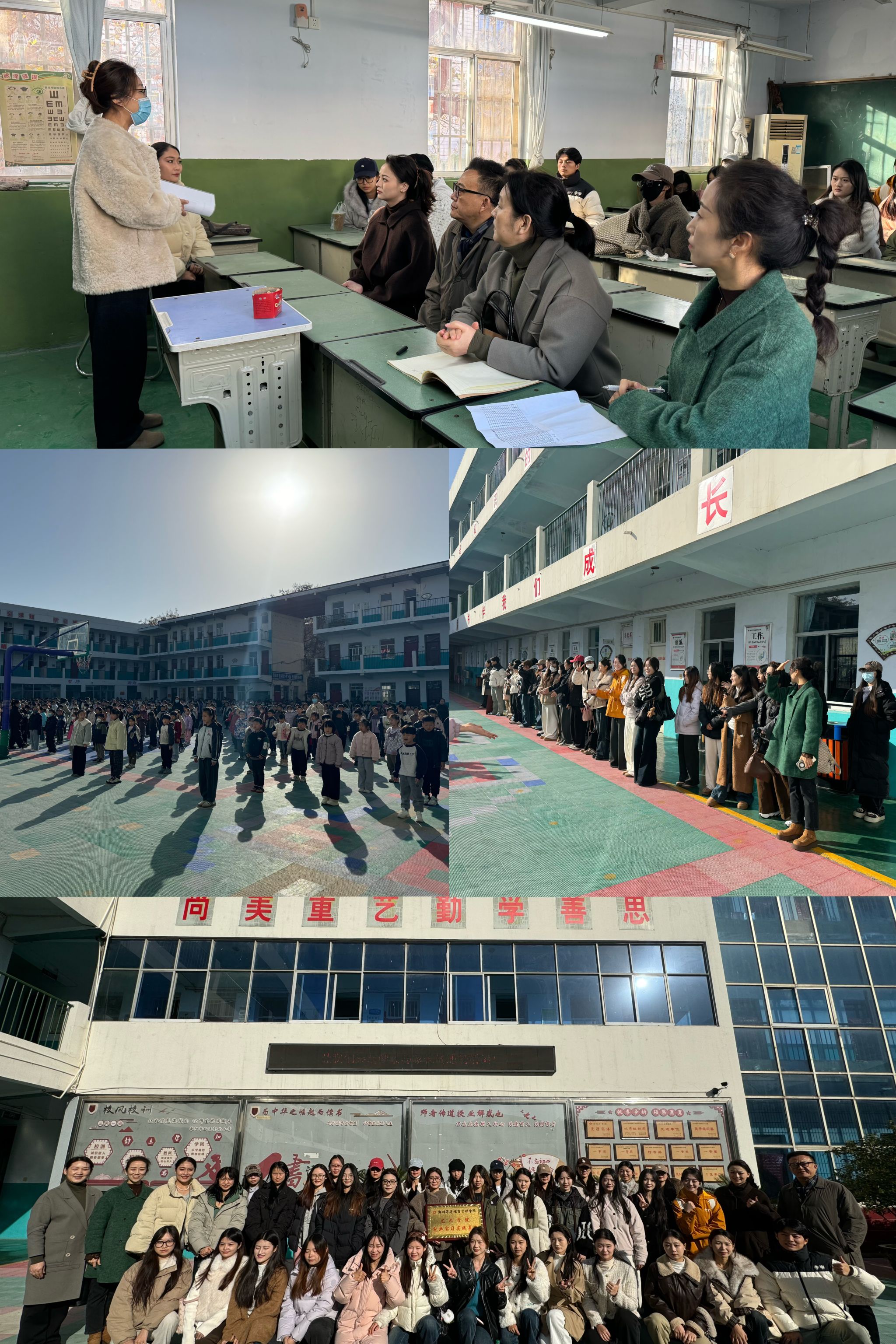 11月28日,舞蹈表演学科带头人毛宝杰、音乐教育教研室主任袁冬梅、舞蹈表演教研室主任段婷婷及舞蹈教师赵意娇一行人员,带领2022级舞蹈表演本科班、2024级舞蹈表演专升本班和2025级舞蹈表演专升本班员工前往荥阳双语实验小学与中原棋遇记进行实习基地专业调研。