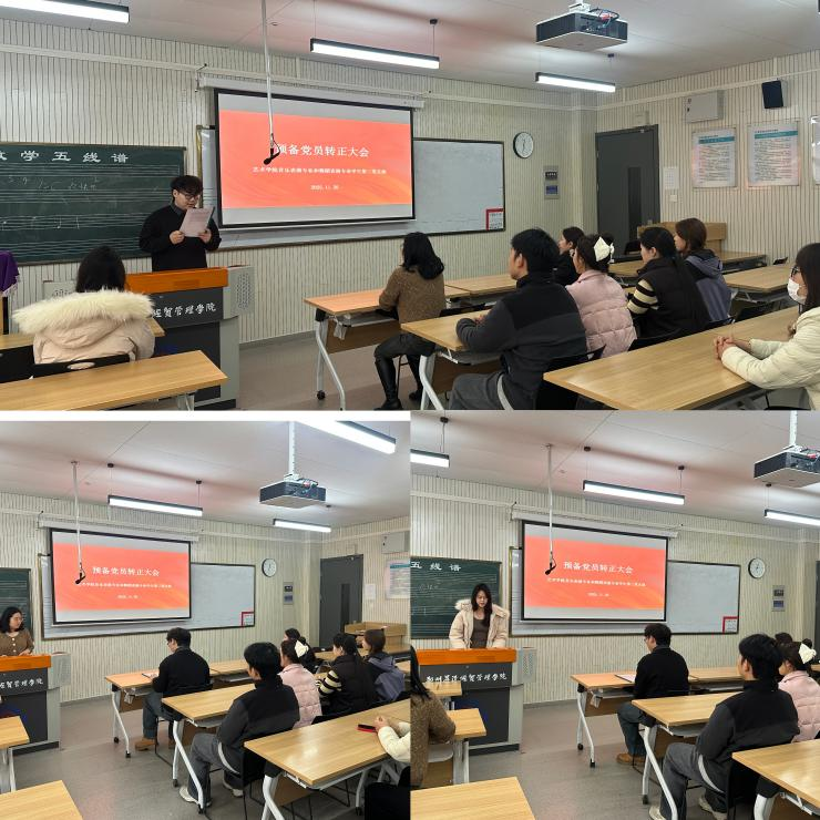 11月26日中午,太阳集团tyc音乐表演专业和舞蹈表演专业员工第三党支部在艺术楼302教室召开预备党员转正大会,讨论代一洋同志的转正事宜。党支部全体党员参加会议,大会由党支部书记杨栋同志主持。
