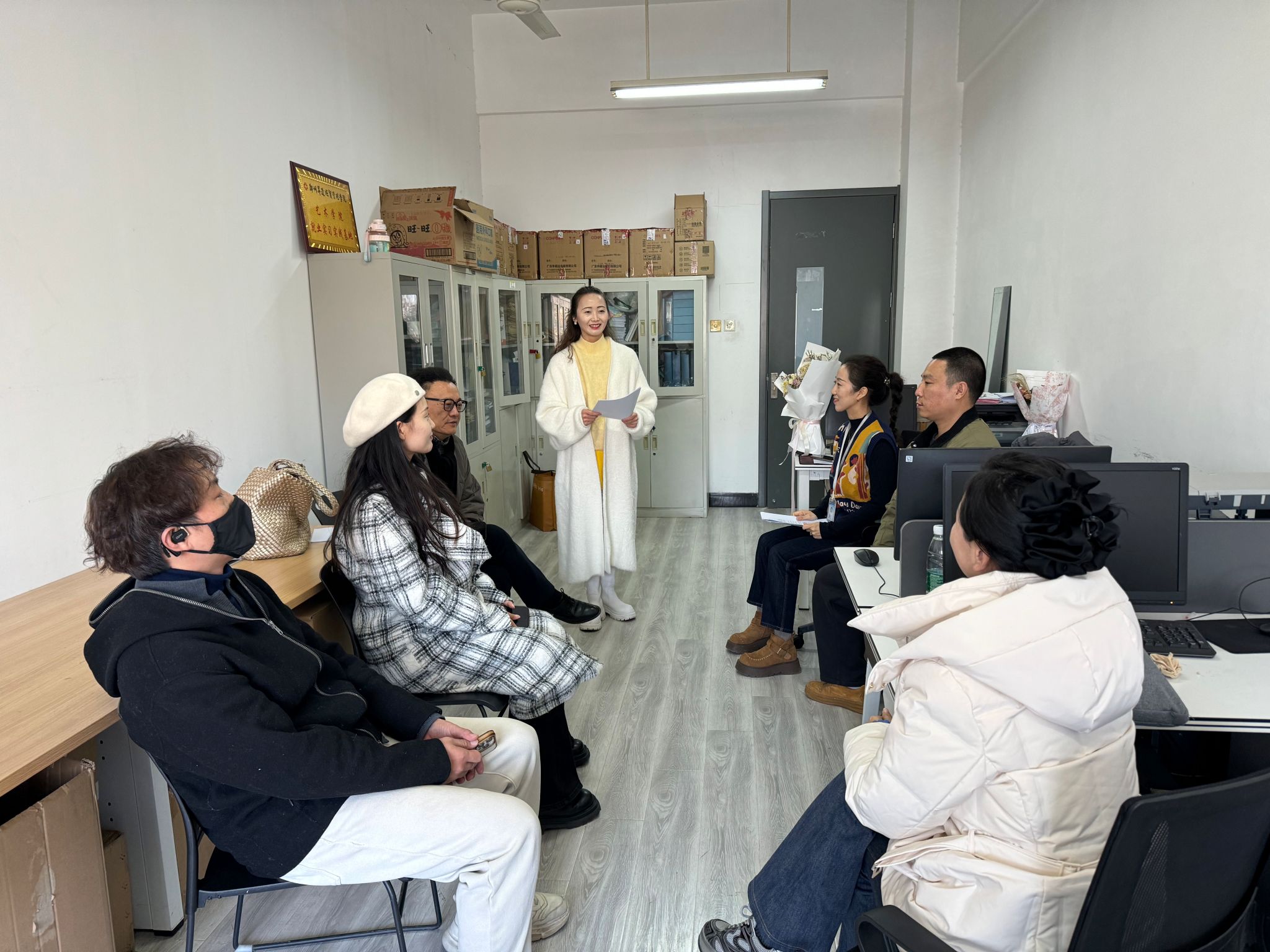 2025年12月4日,舞蹈教研室在太阳集团tyc409办公室开展《古典舞教学中的“文化背景前置”模式融入思政》教研活动。会议由谈倩老师主持,全体教研室教师参会研讨。