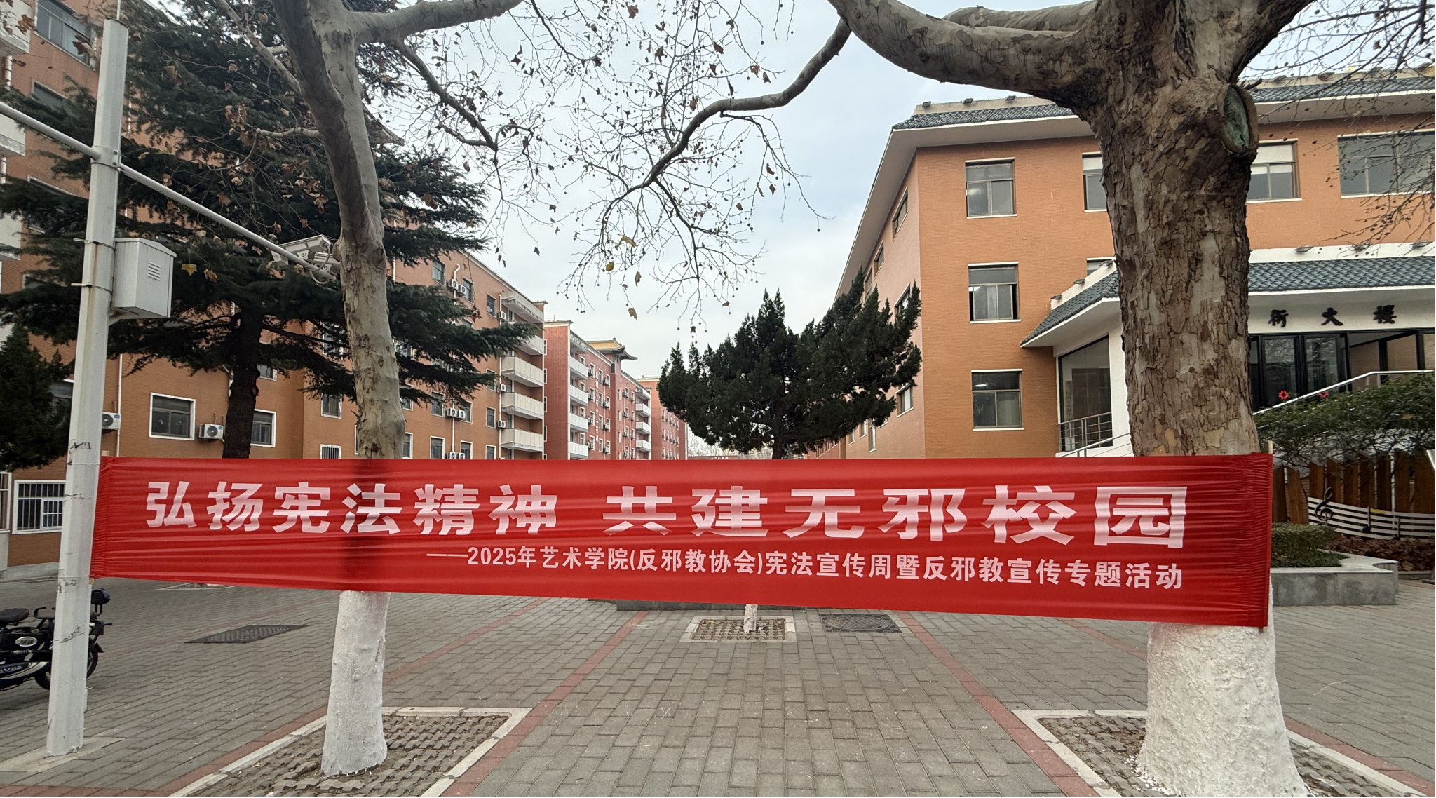 活动期间,学院反邪教宣传协会在校园主干道、教学楼等显著位置悬挂“弘扬宪法精神,共建无邪校园”主题条幅,以直观醒目的方式传递尊崇宪法、抵制邪教的坚定态度,引导师生自觉筑牢思想防线。