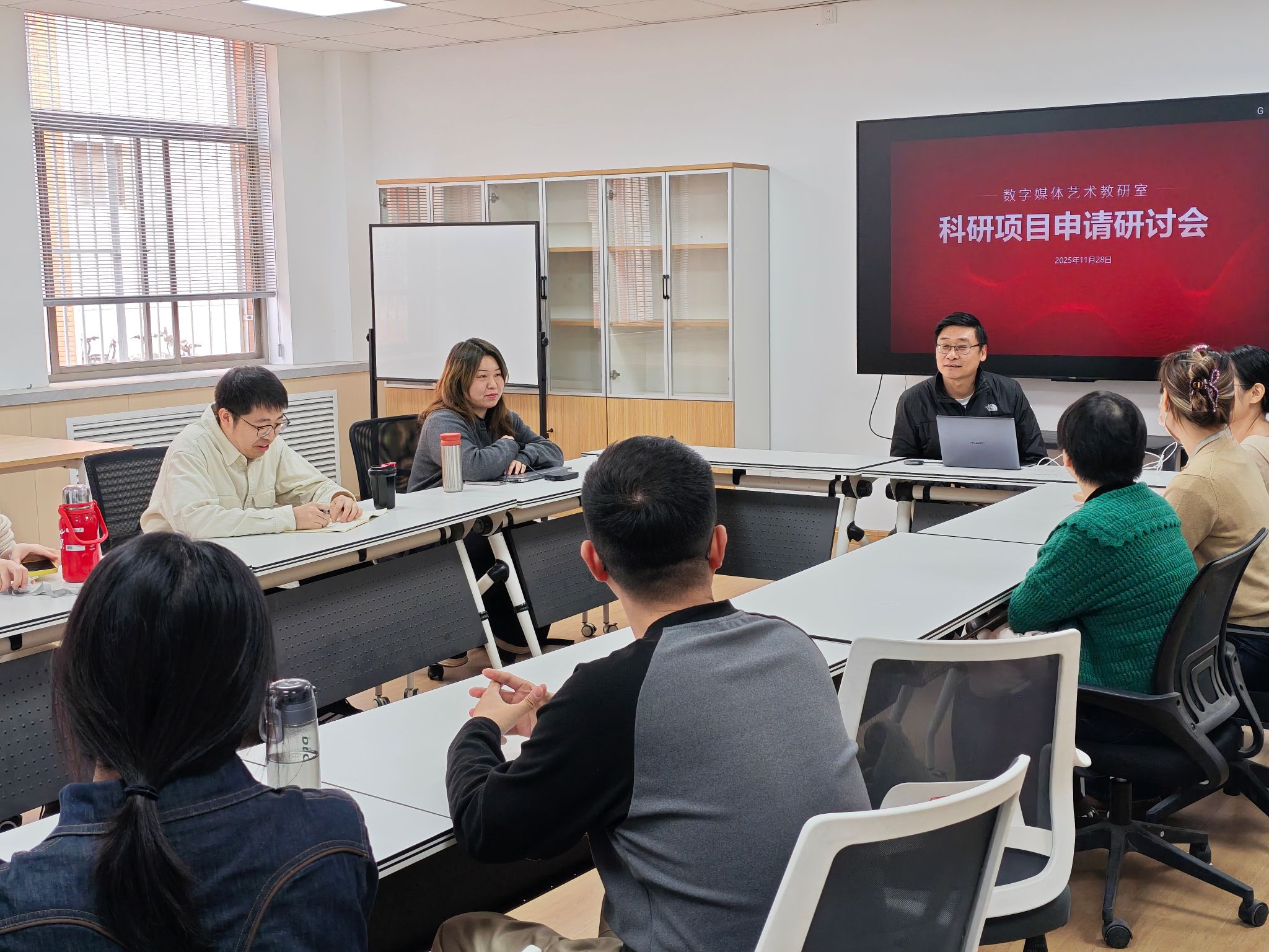 2025年12月4日下午,数字媒体艺术教研室在商管楼108教室组织召开科研项目申请研讨会。会议由教研室主任杨世英主持,全体专业教师参会。会议旨在梳理科研项目申报要点,分享申报经验,提升教师科研项目申报质量与成功率,助力教研室科研工作高质量发展。