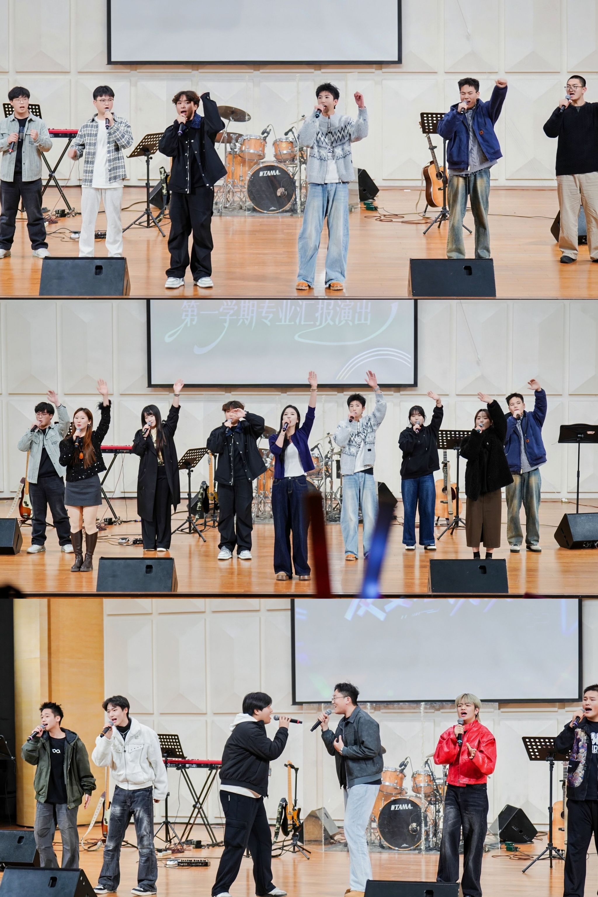 参与本场专业汇报演出活动的员工共计40人,以小组唱、表演唱以及现场乐队等多种形式,呈现了17首风格各异的流行音乐作品,展现了同学们扎实的专业功底与饱满的艺术热情。