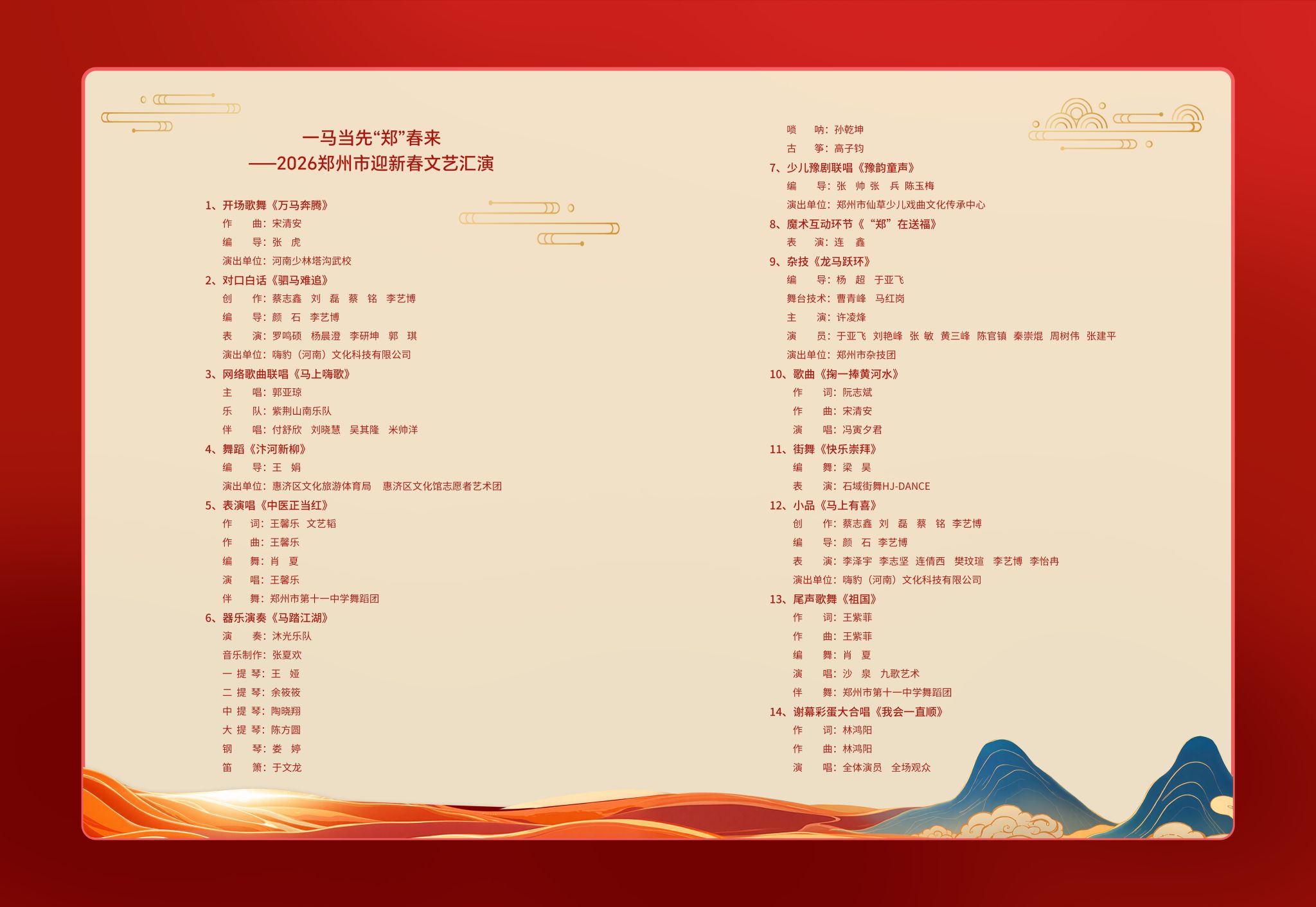 本场晚会以“马”为文化意象主线,寓意奋发进取、团结拼搏和昂扬向上的精神风貌,通过多元艺术形式,生动展现了郑州在新时代背景下蓬勃发展的城市气质和深厚的人文底蕴。今后,学院将持续深化教、学、演一体化实践,以课堂教学为根基,以舞台实践为抓手,不断完善人才培养模式。依托更多优质演出平台,让师生在实战中锤炼技艺、提升素养,努力培养更多高素质应用型音乐人才,助力地方文艺事业高质量发展。