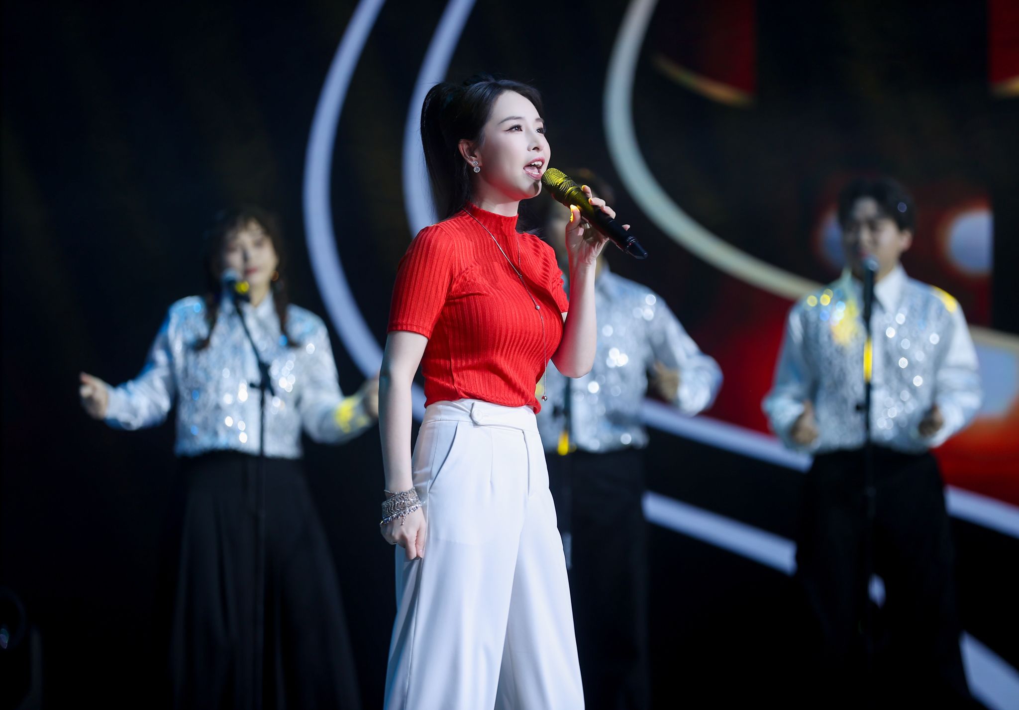 晚会中,郭亚琼老师携9位音乐表演专业员工共同带来的歌曲联唱《马上嗨歌》,精选了《我会等》、《亲爱的你呀》等热歌,唱出了当代年轻人乐观豁达的生活态度。