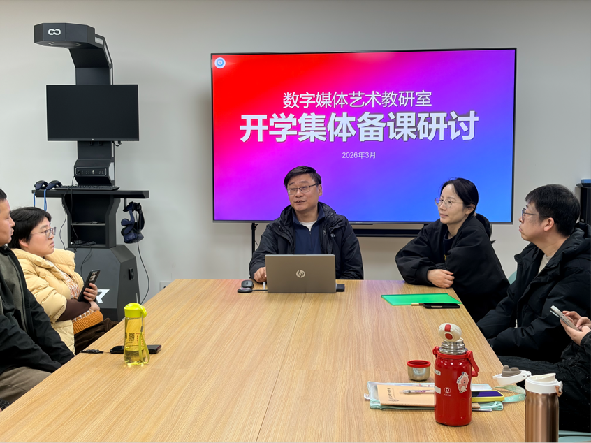 2026年3月12日,数字媒体艺术教研室在商管楼102召开新学期集体备课研讨会。会议由教研室主任杨世英主持,全体教师参会,围绕新学期教学规划、课程建设及毕业设计指导等工作展开深入研讨。