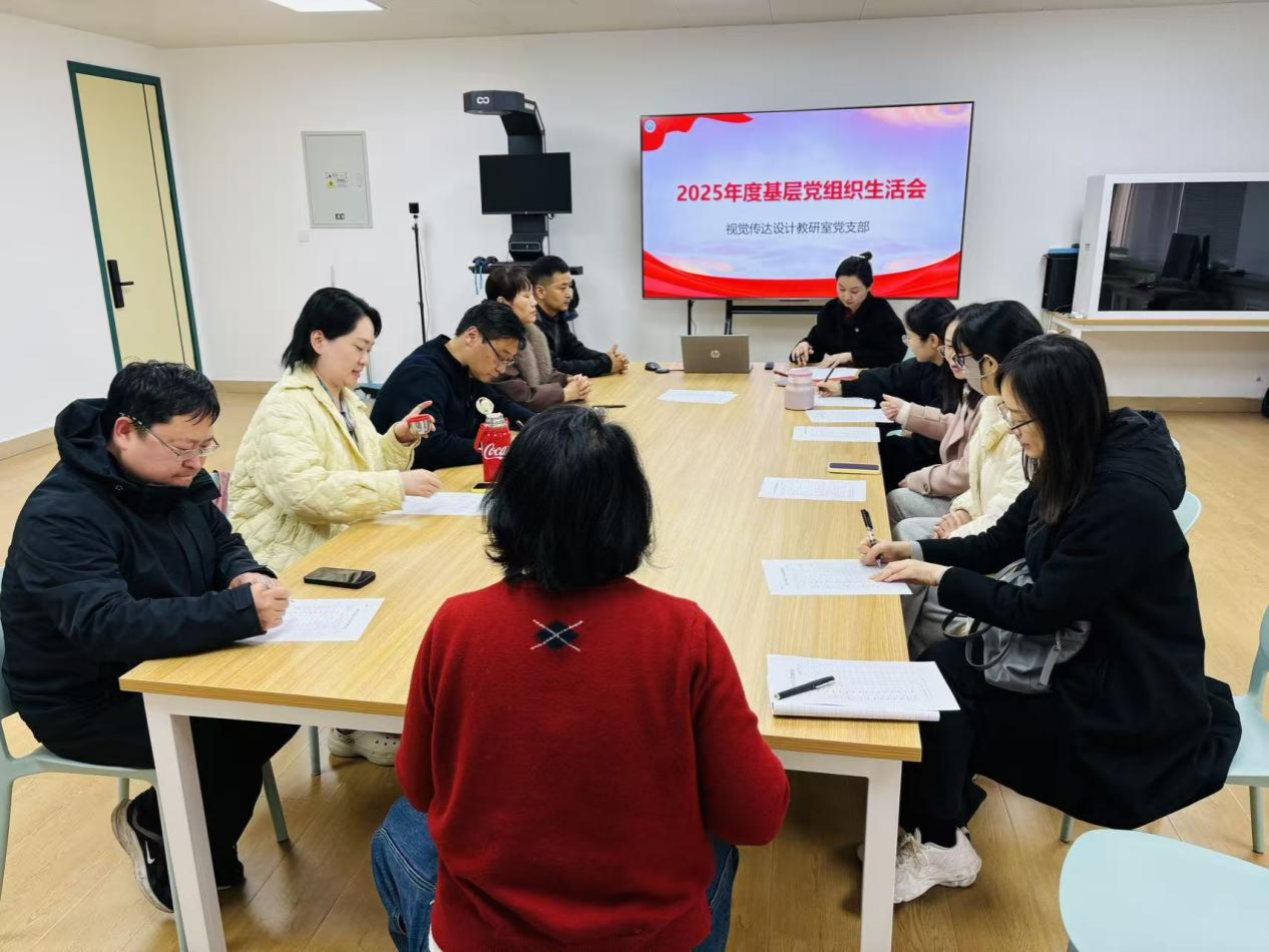 3月13日,视觉传达设计教研室党支部在商管楼102教室召开2025年度组织生活会并开展民主评议党员工作。会议由党支部书记郭红秀同志主持,党支部全体党员参加。