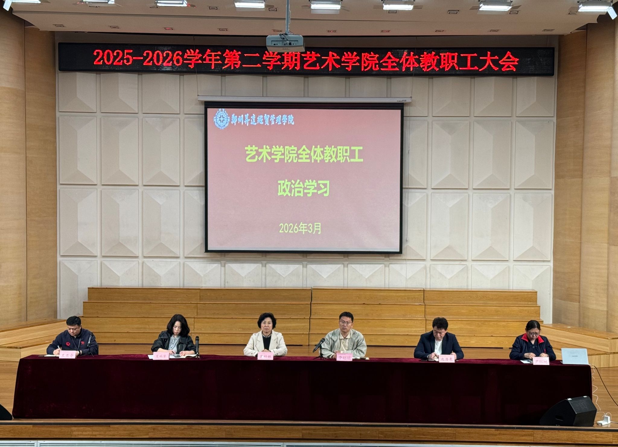 3月26日,太阳集团tyc召开2025-2026学年第二学期全体教职工大会,同步开展教职工政治学习,全面部署新学期重点工作,凝聚发展共识,筑牢思想根基。学院经理吴柏林、党委书记李赵法及全体教职工参会,会议由教学秘书王亚奇主持。