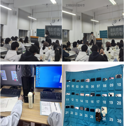 活动期间,班级紧扣活动主题,聚焦文明课堂建设,强化学风与课堂礼仪双提升。各班通过主题班会明确课堂规范,严格执行手机入袋制度;倡导上下课高峰期礼让师长、文明乘梯,以尊师重教的实际行动营造有序高效的课堂氛围。