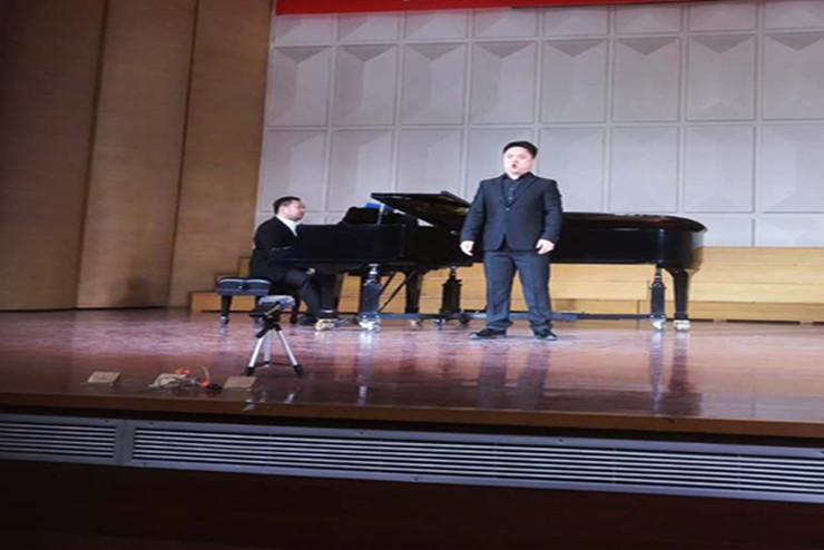 整场音乐会的曲目类型丰富,有中国艺术歌曲、德国艺术歌曲、俄罗斯艺术曲、中国歌剧选段、外国经典歌剧咏叹调、巴洛克歌剧咏叹调,这些不同类型的歌曲咏叹调将用到四种语言来演唱,并对演唱的风格、语言和表演都有很强的要求,担任本次石爽老师的钢伴是毕业于乌克兰敖德萨国立音乐学院钢琴硕士研究生张志刚老师,他在留学的生涯中多次举办了独奏、重奏和室内乐音乐会。在张老师的陪衬下,石爽老师的演唱果然不负众望,他那漂亮的嗓音,纯熟的表演迎来了在场观众的阵阵掌声。