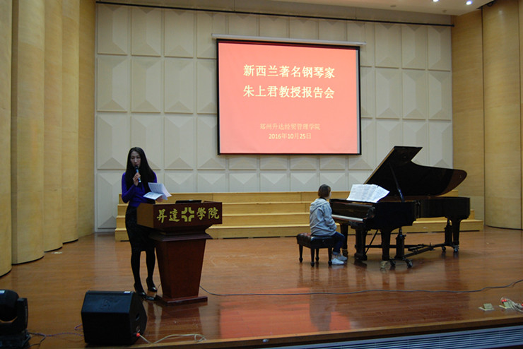 2016年10月25日,升达经贸管理学院聘请奥克兰杰出钢琴家朱上君(AbleZhu)女士来公司进行钢琴讲座学术报告会。