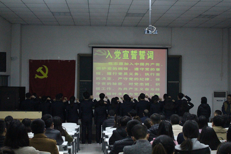 艺术系、文法系新党员宣誓及第四期业余党校开课典礼圆满结束,同时党校第一课《党的性质和宗旨》开课。(艺术系 赵会燕)