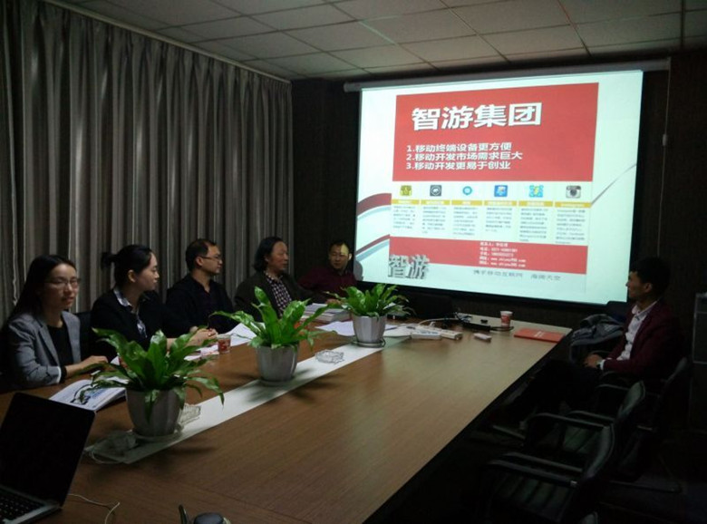 2016年4月28日,艺术系赵维平副主任、韦杨建书记、专业教师梁亮、徐亚楠一行四人前往智游集团郑州分公司考察调研,并与公司负责人商谈了进一步深入开展校企合作、实习实践、就业推荐等事宜。