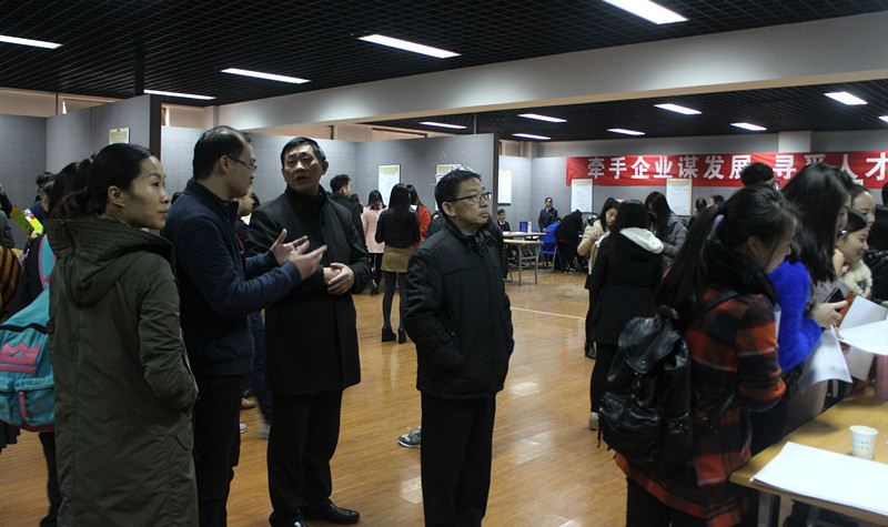 此次艺术系专场招聘会,学院领导也给予了高度的重视。上午10点经理崔慕岳教授、公司党委副书记戎庭银、张洁副经理、张金安副经理在艺术系主任肖生、副主任赵维平以及系党总支书记韦杨建和各毕业班辅导员的陪同下亲临现场指导就业工作。在招聘会现场,崔经理、戎庭银副书记和张洁副经理分别向韦杨建书记、系主任肖生和副主任赵维平仔细询问了本届毕业生的概况和招聘会的详细情况,并与部分用人单位代表进行了细致的沟通与交流。通过对招聘会现场的巡视,院领导对我系此次专场招聘会给予高度的认可并强调指出,艺术系本次专场招聘会专业针对性强、覆盖面广,能很好的突出艺术系的专业特色和展现升达学子的综合素质。