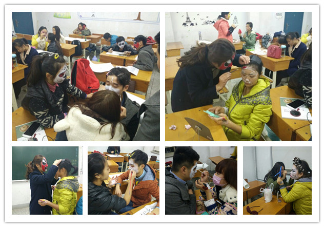 为了让14级艺术设计专业的同学们了解造型观念,训练培养各种熟练的构成技巧和表现方法,培养审美观及美的修养和感觉,提高创作活动和造型能力,活跃构思。近期在我系艺术设计专业杜霞老师的创意下,对14级环艺4班和环艺5班的平面构成课创新教学模式,进行了一场生动有趣的绘画实践课——脸绘课。课堂上让同学们随意发挥想象和创意,在自己或者同伴的脸上实验绘画脸谱。课堂上同学们都精心的绘画着,或随意发挥,或事先准备好的图片,有的同学两人结伴互相绘画,有的面对着镜子独自绘画,不久一张张生动形象又可爱的脸谱造型就都呈现在眼前。