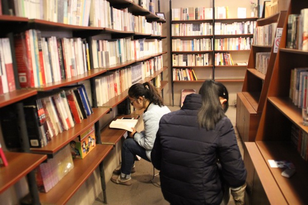 同学们或者自己一个人依靠在书柜旁安静研习、或者坐在临街的橱窗前沐浴在阳光中细细品读,每个人都充分遨游在知识的海洋里。随着活动的持续开展与深入,很多同学都表示完成课程作业后再去图书馆和书店读书能使自己的心情得到很好的放松,能够感受别有一番滋味的宁静。很多同学都认为老员工心态的真谛,就是这么两个字:“宁静”。因为同学们还没有真正踏入社会,没有各种生活纷扰,宁静的冬日午后,捧一本自己喜爱的书,慢慢感受内心的那份宁静,是老员工活中最美不可缺的美好时光。