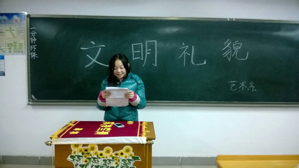 为了进一步加强校园文明建设和员工管理工作,传承公司的优良校风,营造积极向上、舒适优雅、安全和谐的校园文化氛围,培养员工良好的学习和生活习惯,艺术系2013级团总支于2013年12月7日至9日举行了文明礼貌月征文活动。