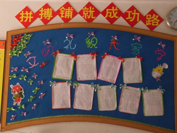 征文活动分征文作品朗诵和征文作品展示两个环节。在征文作品朗诵环节,团总支每个同学经过认真深入的资料查阅和文章构思,将自己对文明礼貌的理解和认识形诸文字,以记叙、议论、散文、诗歌等不同体裁形式加以体现,征文收集之后,团总支又以朗诵的方式,让同学们结合自己递交的作品,依次上台朗诵作品、交流心得、畅谈体会。在征文作品展示环节,团总支从同学们递交的作品中,择优粘贴在主教室,以壁报的形式提醒大家要时刻践行文明礼貌的宗旨。