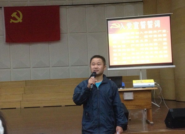 文法系党总支书记张朝阳同志做了重要讲话。一方面,他对此次新入党的同志给予肯定并向他们表示祝贺,希望他们在以后的学习生活中能继续以一名优秀共产党员的标准来严格要求自己,不断影响身边的同学,体现一名光荣的中国共产党员的价值。另一方面,对本次参加党课的积极分子提出了几点要求和希望。希望他们能够在接下来的时间里,以一名党员的标准时刻鞭策自己,不断向党组织靠拢,争取早日加入我们伟大的党组织!