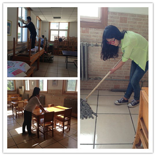 同学们骑自行车半小时后,到了敬老院门口。随后,工作人员热情地带领大家进入敬老院的住宿区、餐饮区、活动区参观。同学们说明活动计划后,分为几组,开始在餐厅、后厨进行大扫除。擦玻璃、抹柜子、拖地,经过大家的共同努力,整个餐厅焕然一新,整洁明亮。敬老院的工作人员都很开心,不停地夸同学们能干。