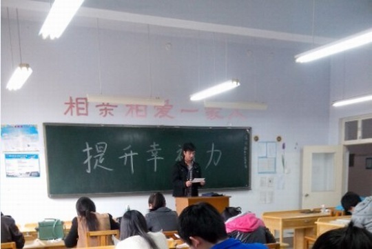 为开展好此次幸福课活动,各班团支部进行了积极筹备。12环艺1班团支部采用情境体验、分享交流的形式。带领同学们进行一分钟体验:请大家用一分钟的时间写下自己认为幸福的事情,展示员工对幸福原生态的理解;再用一分钟写下自己觉得不幸福的事情,从所写的几个“不幸福”中划去若干,只保留其中一个并交流,让员工进行自我教育,自我反思。12环艺2班李文秀同学引用了某部电影里的一句话:“饿了,你有馒头吃,我没有,你这就是幸福。”该班经过全班同学的激烈讨论后总结了“七大偷走幸福的理由”。(1)爱比较;(2)缺乏信念;(3)不善于发现阳光面;(4)不知道奉献;(5)不知足;(6)相互不信任;(7)、过于焦虑。12环艺6班则带领同学们在后山做“赢走”和“贴烧饼”的小游戏。通过班级活动让大家放松身心,感受身边的幸福和快乐。