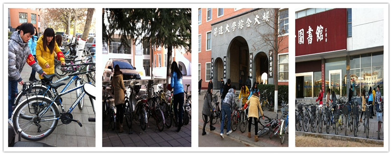 行动之二:摆放校园自行车辆。自行车随意摆放,不小心碰倒或者被风吹倒也是每天每时都在发生的事情。第二小分队的志愿者前往学校大门口、教学楼、操场、图书馆、宿舍楼前的自行车停放处,将停放不到位或者瘫倒的自行车一一扶正,排列整齐。