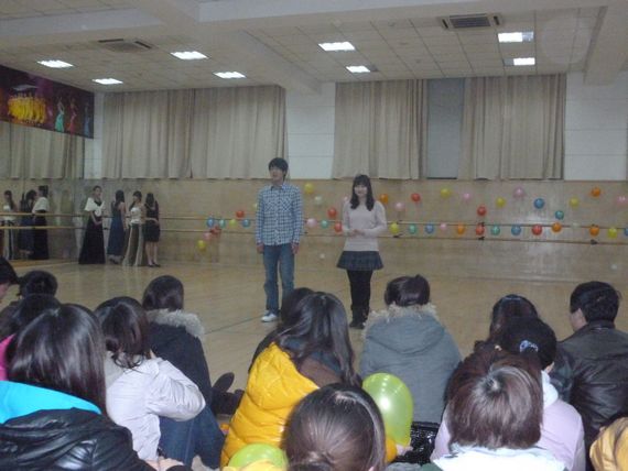 为迎接新年到来,12月27日晚7点在艺术楼舞蹈东厅,艺术系团学会全体成员满怀激情,欢聚一堂,共同举办“迎新春,庆元旦”2012元旦联欢晚会。整场晚会气氛热烈、激情洋溢,充分的体现了艺术学子的青春活力与丰富的创意情趣,晚会现场高潮迭起,台下尖叫欢呼声不断,充分给予了观众们视觉听觉上的完美享受。此次晚会聚集了我系团学会各部门部长、干事等,艺术系团委书记曹华莹老师、辅导员朱影影老师和潘悦老师出席并观看了本次晚会。