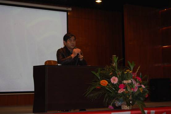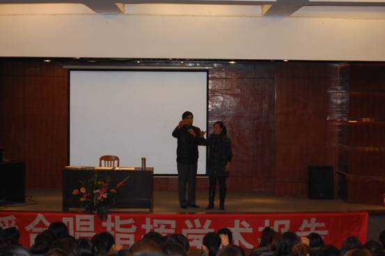 12月3号,湖南师范大学音乐学院副经理、中国合唱协会常务理事、湖南省音乐家协会合唱专业委员会会长、全国高师合唱学会副主任周跃峰教授应艺术系之邀在公司外语1号楼多功能报告厅给音乐表演专业的师生作了一场关于合唱指挥方面的学术报告。