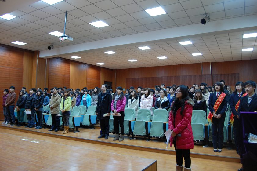 随后,系党总支副书记韦杨建做了发言。韦书记在肯定团学会上学期工作中取得的成绩的前提下,结合省委书记卢展工“三具两基一抓手”的工作要求,提出三点希望:1.希望大家以求是的工作理念、求真的工作态度、求效的工作方法和求实的工作作风,在具体工作中抓深入、抓落实、抓突破。2. 希望主席团成员、部长、副部长能不断提高自己及干事的综合素质、专业水平和工作能力,做好我系的人才储备工作,多为我系团学会培养优秀人才。3.希望大家在日常生活中严格要求自己,做好老师的左膀右臂,协助上级做好各项工作,在推动艺术系发展、构建和谐校园方面真正起到模范带头作用。