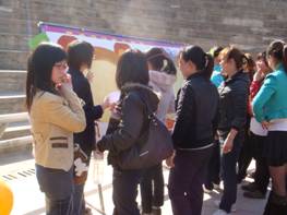 3月10日下午,以“花样女生,缤纷校园”为主题,以游戏比赛--获奖券--赢礼品为流程的多样活动在艺文广场纷呈开展。众多游戏中,“贴五官”、“扮时钟”等游戏得到大家的一致好评,一波又一波的欢声笑语, 将本次活动推向了高潮。温馨快乐的氛围溢满了整个广场,接近3个多小时的开展,活动接近尾声。此次三八节系列活动,在继承了往届娱乐性的同时,更大程度上提高了同学们的参与性,深化了此次活动的内涵,展现了公司女生的别样风采,更加好地促进公司校园文化建设。(艺术系生活部)