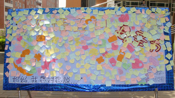 为做好此次活动,承办活动的08环艺1班团支部做了大量的工作,同学们制做了两块展板,一块以“向妈妈汇报,给妈妈献礼”为主题,展现我系学子的优异成绩,向母亲汇报;另一块是同学们亲手制作写给妈妈们的祝福剪纸,同时倡议全校师生共同参与到此次活动中,写下自己对妈妈的祝福与感恩。