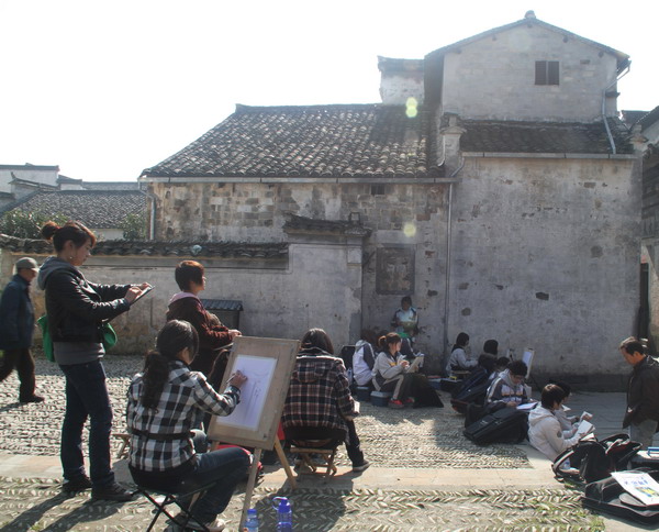 写生基地西递村隶属于安徽省黄山市黟县,与世界文化遗产宏村相邻,是拥有四百多年历史的古村落。村庄既有依山傍水的自然风光,又有大量保留完好的明清时期徽派建筑,自然与人文交融,是写生的上佳之选。白天,员工在专业教师的指导下寻找景点作画,用素描、水彩和油画等形式极力彰显自己的艺术表现能力。晚上,再由指导教师对员工作品进行一一点评,帮助员工理论与实践结合,不断提高写生能力,更好地掌握艺术创作的技巧。写生期间,我系员工充分发扬升达精神,展示了较高的综合素质,取得了良好的社会效应。临行前晚,同学们用精心准备的文艺节目为此次写生活动划上了圆满的句号。
