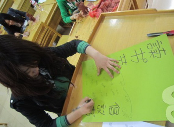 08环艺1班同学制作了宣传世界读书日的手工倡议书。他们在自己亲近书籍之余,还积极倡导身边的人一起投身于这个行列之中,相约“4·23”! 倡议活动在艺术楼大厅举行,经过此处的老师、同学们都纷纷前来签名支持活动,不多时签名板上已布满了许多洋洋洒洒的签名。