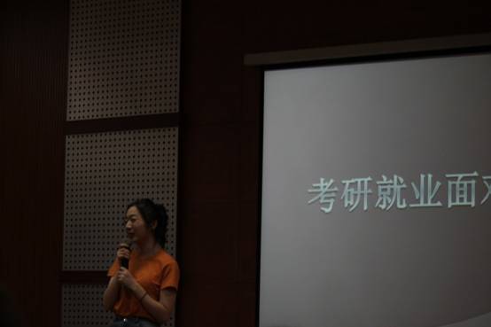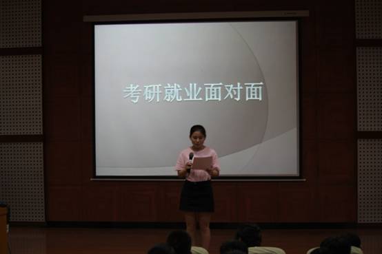 本次交流会分为两个部分,首先由五位同学分别就自己的考研经历和就业经历进行简短的介绍,她们分别是刘怡贝、毛柯婷、张萌、刘慧琪和李静玲五位同学,五位同学从自己大四这一年的亲身经历出发,分享了自己对于考研填报学校、复习备考等方面的经验和心路历程,鼓励学弟学妹们要坚定自己的信念,不怕苦不怕累不懒惰,还要“一颗红心两手准备”,付出未必能够如愿,但是不努力是一定不会成功的。两位就业典型同学也分享了自己对于当前老员工就业形势的看法和建议,鼓励大家在学校要好好学习,只有打下坚实的理论基础,才能在未来的职场中找到真正适合自己的岗位,并且做出骄人的成绩。