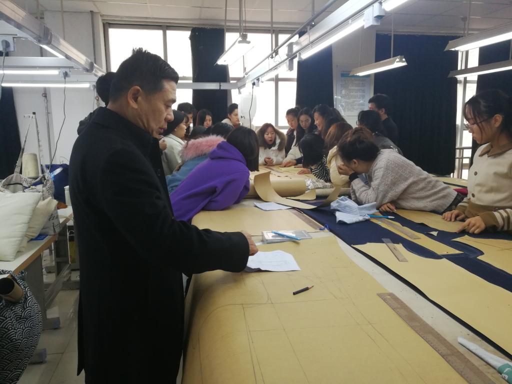 随后,张德伟书记于第三节课又来到新建综合楼710教室,听了尹晓瑛副教授的课。尹老师这节课是男装裁剪与制作,她教法灵活,加强了教学示范和互动。同学们在老师手把手的示范下逐渐掌握男装的打版、裁剪等工艺。