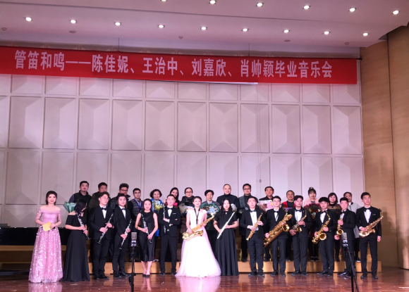 “以梦为马,不负韶华”2018年12月19日晚7点,四名管乐毕业生成功举办了“管笛和鸣”毕业音乐会,即将毕业的他们,再一次登上舞台,为我们留下美好的记忆,整场音乐会,通过独奏、重奏、合奏等形式进行展现,演奏风格也丰富多彩,从古典到浪漫再到流行,中外名曲贯穿全场。