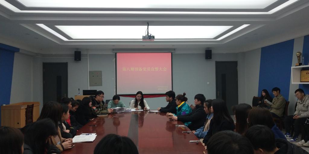 会议第四项,由杨萌玮老师带领全体发展对象进行入党宣誓,宣誓过程庄严凝重,全体预备党员声声震彻的入党誓词代表了他们对党最忠诚的决心。
