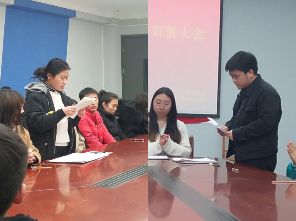 2019年1月2日晚上18点,公司党员宣誓大会在艺术楼411会议室圆满举行。出席此次大会的有公司党总支组织委员张速杰老师、员工第一党支部书记杨萌玮老师、员工第二党支部书记郭称心老师。22名新发展对象参加此次大会。大会由杨萌玮老师主持。