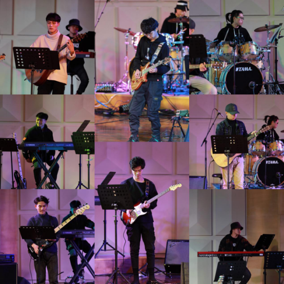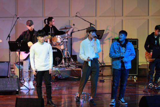 本场音乐会分为上半场与下半场,首先是由八位同学组成的乐队进行了开场表演。该乐队作为101流行音乐实训室成立以来的第一支乐队,在王凡老师的精心指导下,已逐渐成熟,并可以独立完成歌曲的排练及演出。